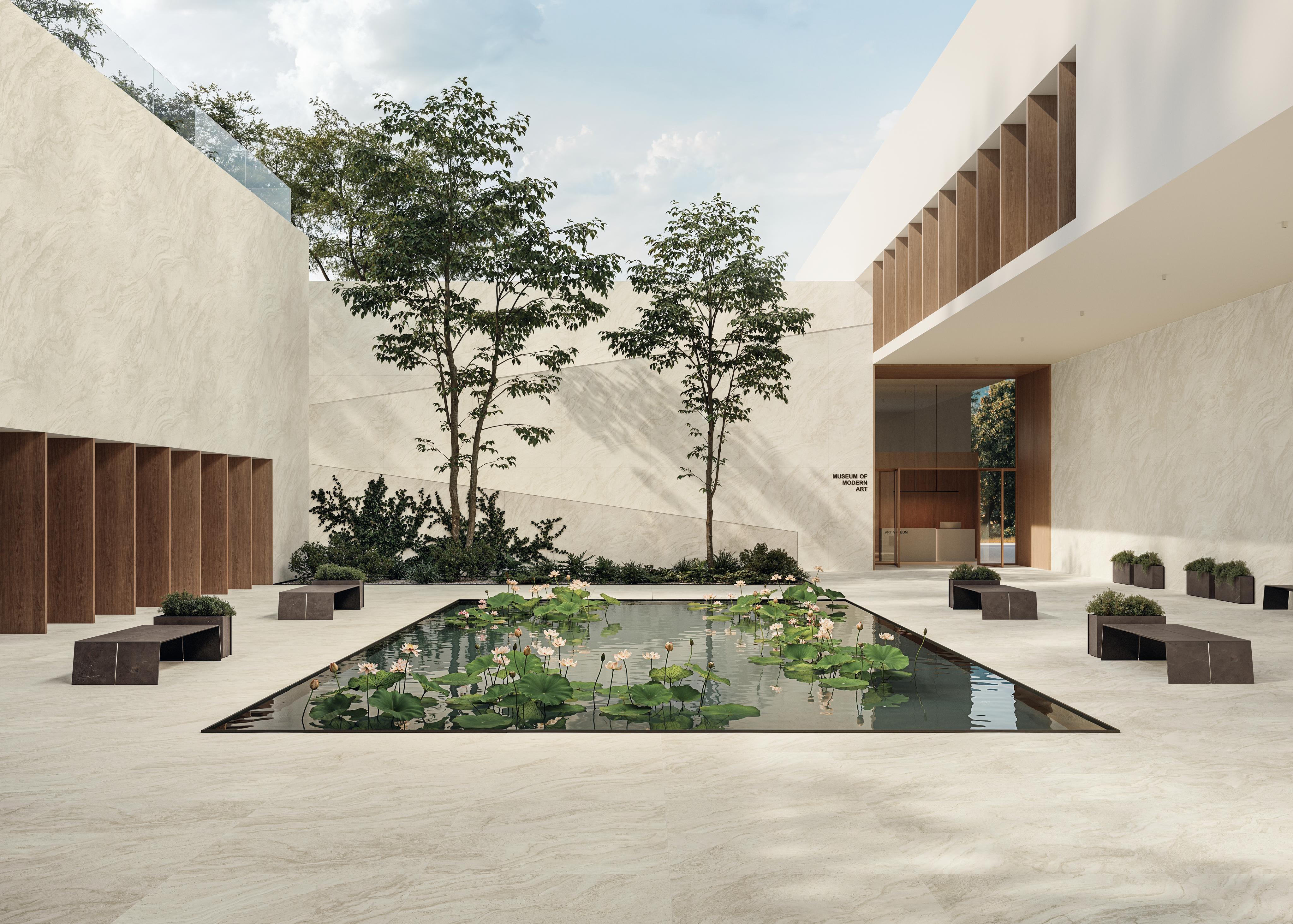 Kolekce Nyra je navržena tak, aby plynule provázala interiér s exteriérem. Díky široké škále formátů umožňuje vytvářet velkorysé plochy s minimem spár, které zajišťují optickou kontinuitu, vzdušnost a otevřenost.