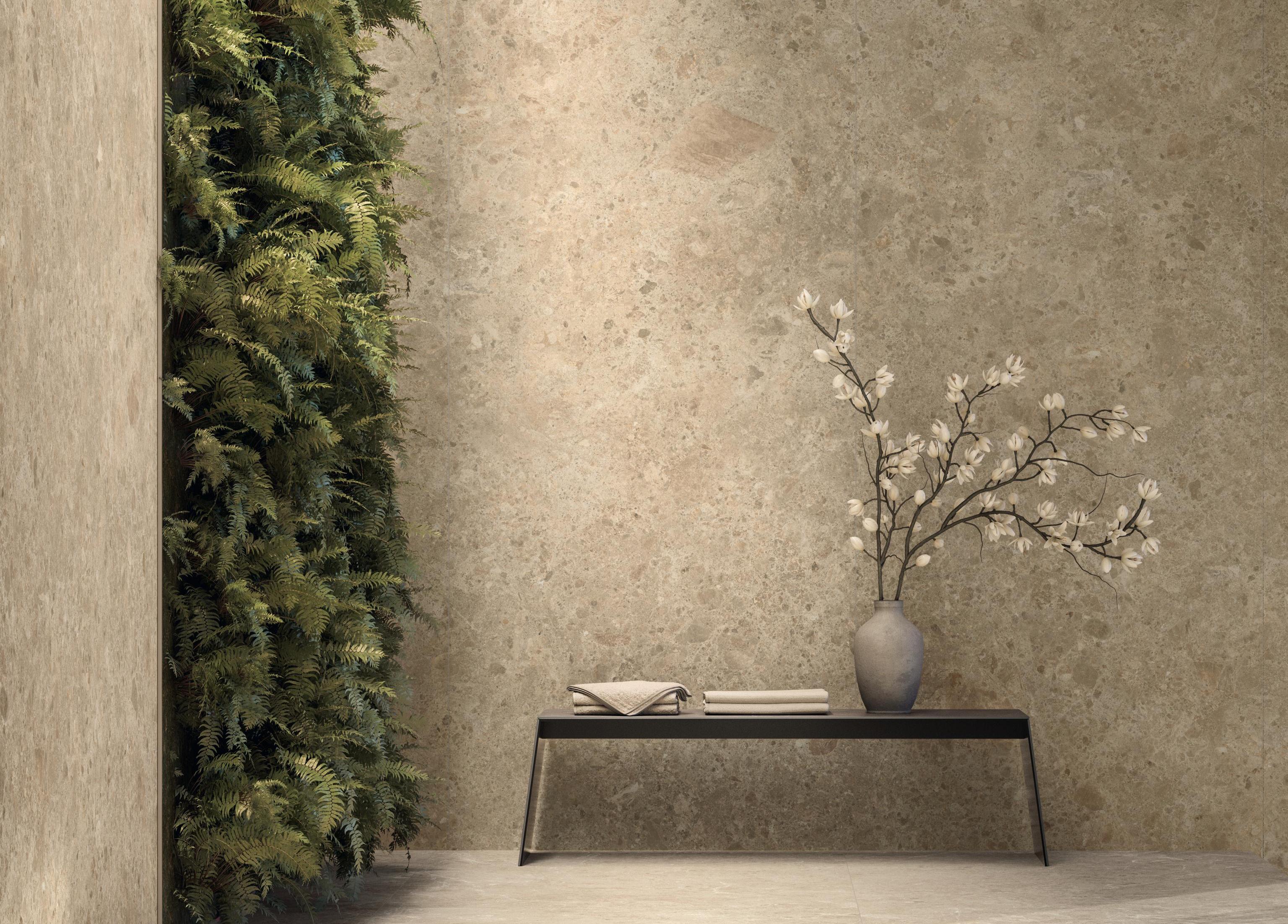 Nová série Atlas Concorde není kopií žádného existujícího kamene. Jde o originální, uměle vytvořený povrch v kamenném vzhledu a v přírodě ho proto nenajdete. Vznikl na základě biofilního přístupu, který propojuje architekturu s okolním prostředím a staví na myšlence, že kontakt s přirozenými materiály, strukturami a světlem pozitivně ovlivňuje lidské zdraví a pohodu.