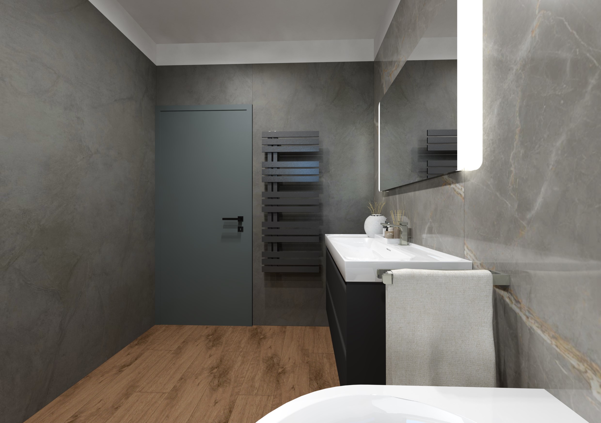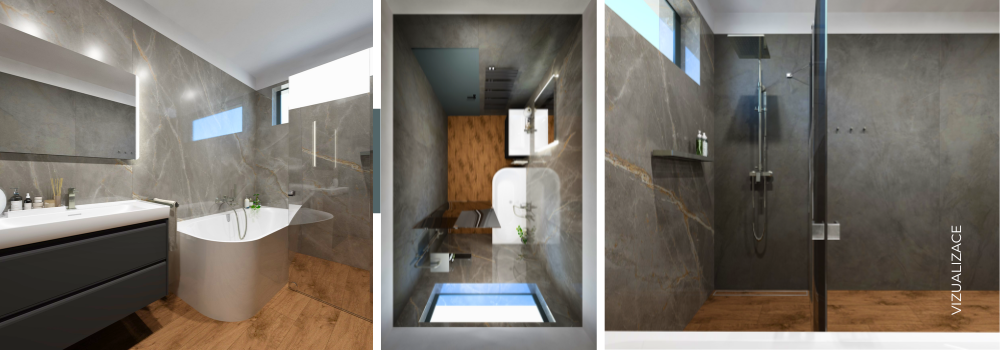 Cesta k nové koupelně začala u 3D návrhu. Pro majitelku bylo klíčové vidět, jak spolu budou komunikovat odvážné textury a specifické barevné kombinace, které si předtím jen malovala ve svých představách. Právě vizualizace potvrdila, že i na malé ploše lze vytvořit harmonický celek, pokud se správně pracuje s proporcemi.