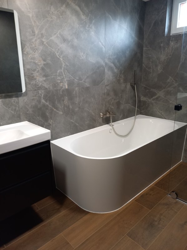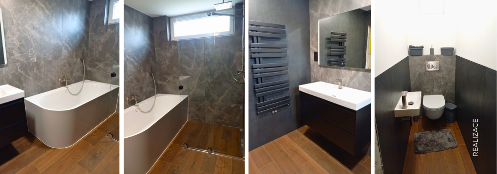 | "Mám velkou radost ze zástěny – že to půjde hezky od stěny ke stěně, také z vany, že ji vyrábí ve 160... a že se mi splní to zrcadlo, co jsem si před půl rokem kreslila jen jako sen! A ty obklady a barevná kombinace – boží!" – spokojená klientka |