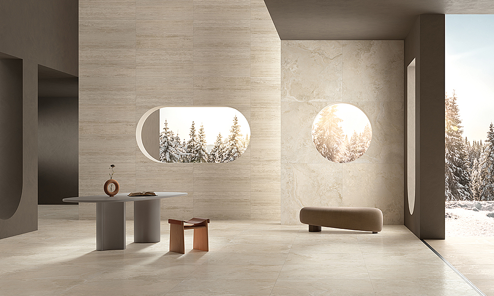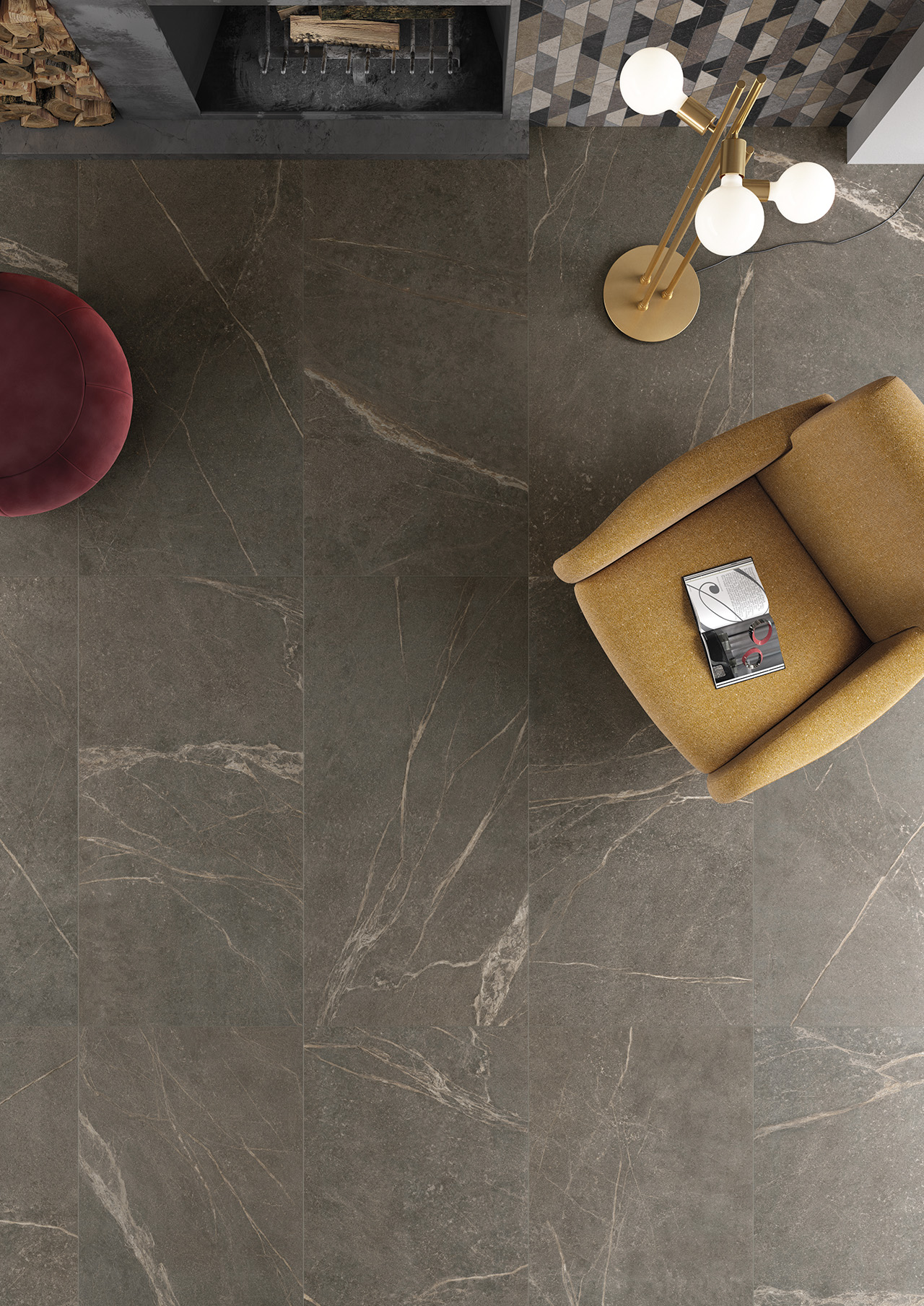 Ucelený a téměř spárami nerušený vzhled dlažbu a potažmo celou místnost opticky zvětšuje. Je to dáno rozměrnými kusy kachlí, které na sebe zvolna navazují. Díky tomu vzniká určitý optický klam prodloužení a celá místnost se tak může pyšnit elegantními liniemi.
