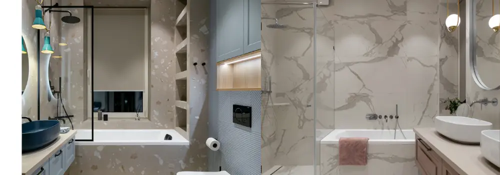 Zajímavým doplňkem je takzvaný „vein touch“, 3D povrch, který dodává obkladům strukturu a hloubku. A přestože vypadá luxusně, nevyžaduje speciální údržbu – dostatečnou službu udělá obyčejný hadřík a přípravek proti vodnímu kameni. Z hlediska bezpečnosti na podlaze koupelny i ve sprchovém koutě bohatě postačí protiskluzová dlažba s faktorem R9 až R10. Hrubé venkovní typy se sem nehodí a nejsou příjemné na dotek ani na údržbu.